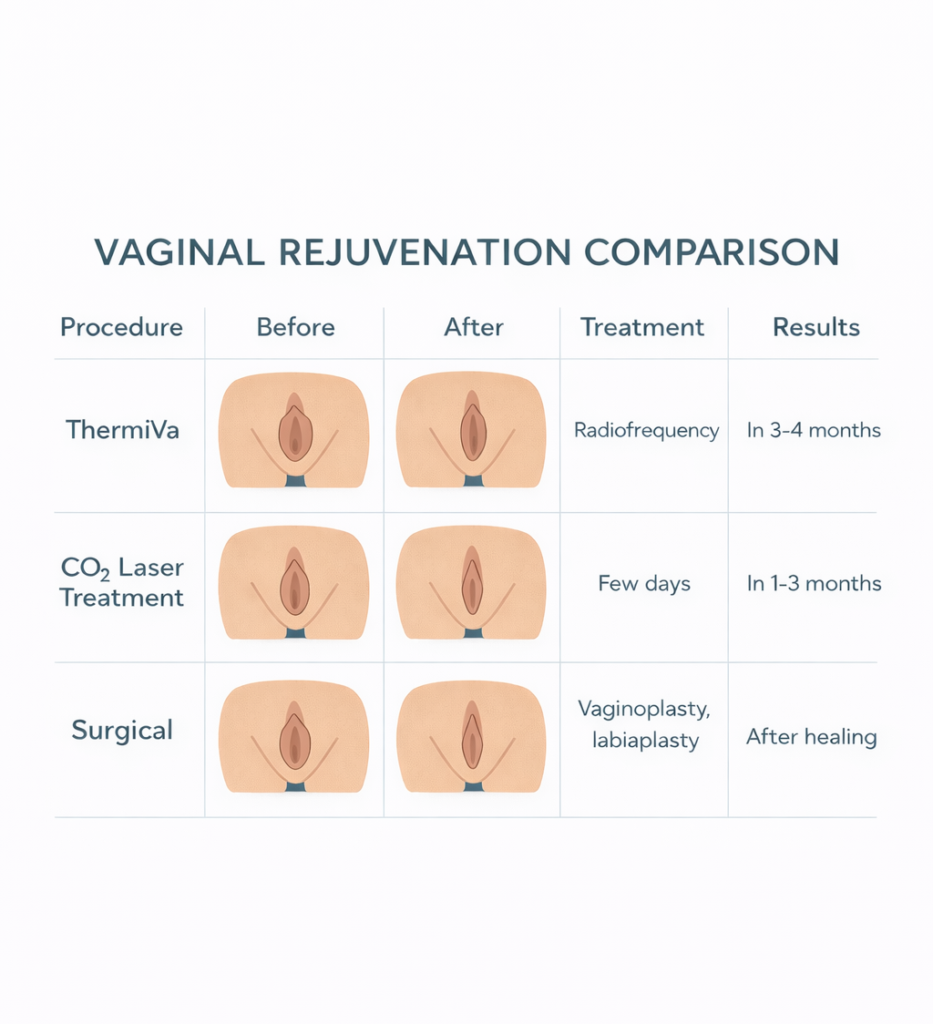 Genital Rejuvenation includes a range of surgical and non-surgical treatments designed to improve vaginal tightness, enhance aesthetics, and restore intimate comfort in a safe, confidential, and effective manner.